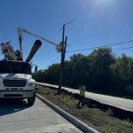 Completed three-phase electric connection with two new poles, including the transformer pad.