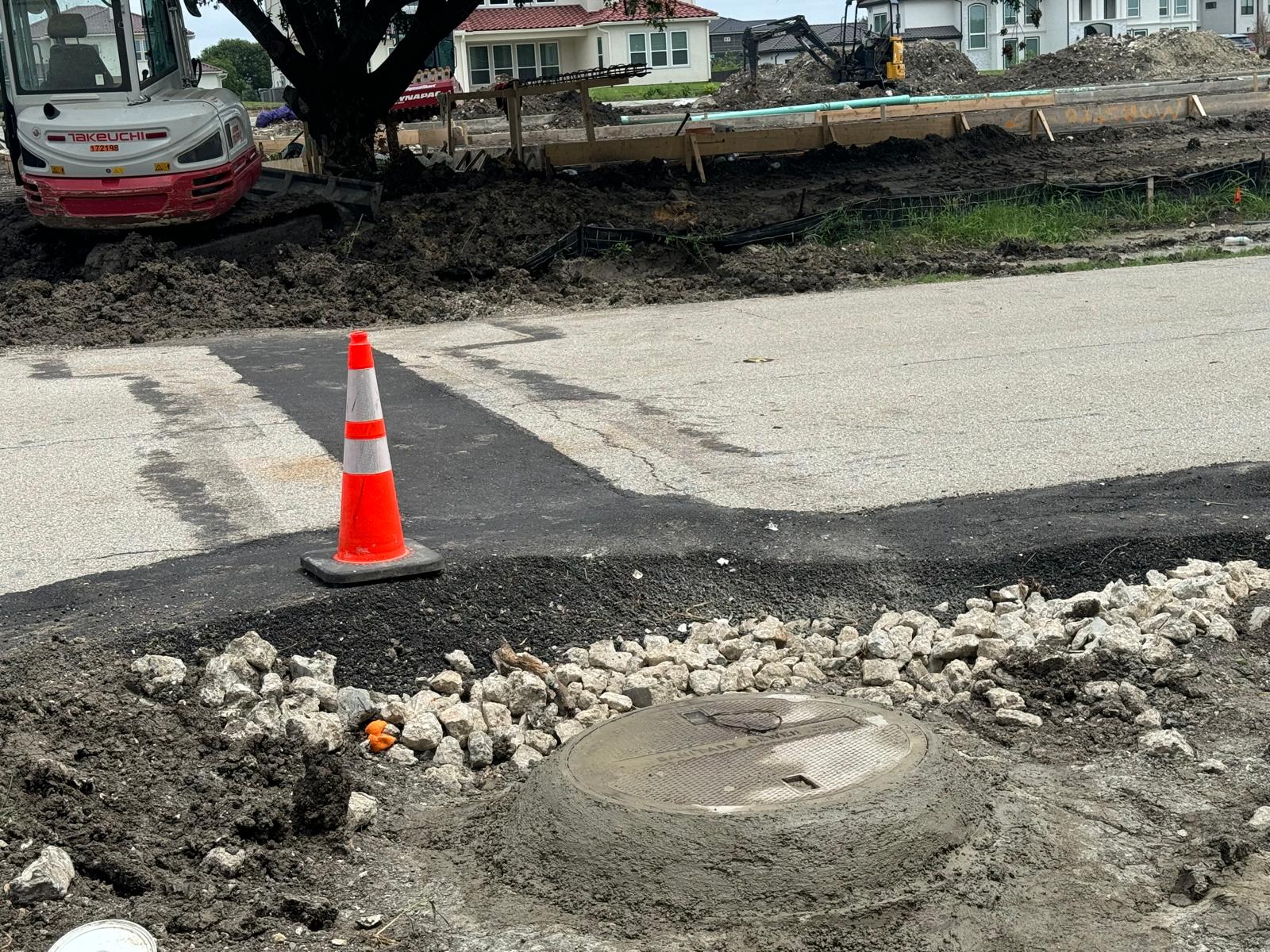 The main sanitary sewer installation is 100% complete, along with the manholes and other deliverables for phases 1 & 2.